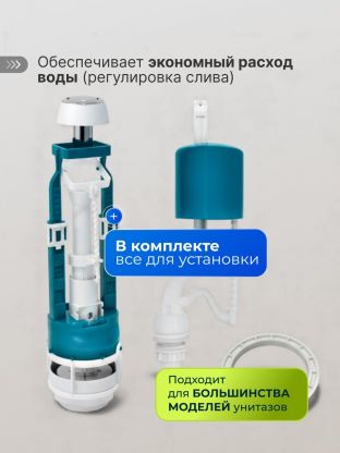 Арматура наполнительная - устройство, автоматически заполняющее определенным количеством воды смывной бачок после его опорожнения и герметически закрывающееся. Сливной клапан предназначен для использования в смывных бачках высотой от 290 до 405 мм. и с диаметром отверстия в крышке бачка 40 или 26 мм.