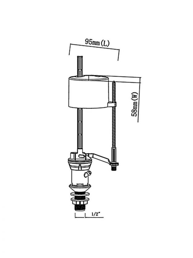 Арматура для бачка унитаза нижняя, 1/2", пластик, двухрежимная, кнопочная, хром, Orio, АНС-1112Х