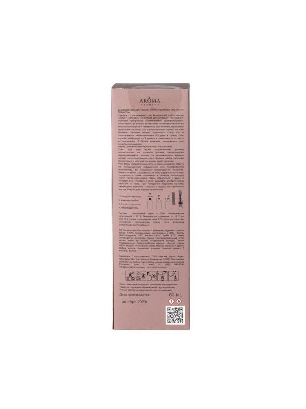 Ароматический диффузор - это безопасный и экологически чистый способ ароматизации помещения. В комплект входят фибровые палочки, благодаря которым аромат распространяется в помещении. Интенсивность аромата регулируется количеством палочек. Не забывайте переворачивать палочки 1-2 раза в день. Характеристики: Объем: 60 мл. Аромат: теплый табак. Преимущества: Безопасный. Экологически чистый. Ноты аромата: табак, бобы тонка, сухофрукты. Диффузоры с фибровыми палочками — это замечательный способ ароматизации вашего дома. Они абсолютно безопасны, экологически чисты и натуральны, что делает их отличной альтернативой химическим ароматизированным спреям. Эти диффузоры наполняют ваш дом приятными и стойкими ароматами, создавая ощущение свежести и уюта. С каждым движением воздуха, фибровые палочки медленно рассеивают аромат по всему помещению, наполняя ваш дом гармонией и комфортом.