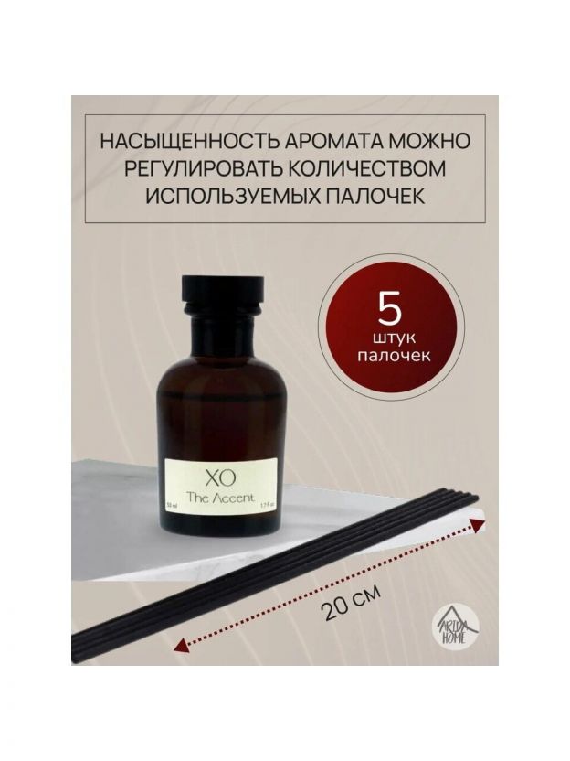 Диффузор с фибровыми палочками - это безопасный экологически чистый и натуральный способ ароматизации помещения, является прекрасной альтернативой ароматизированным спреям. Стильный дизайн этого модного ароматического аксессуара украсит любой интерьер. Диффузор представляет собой изящную стеклянную емкость с ароматной жидкостью. В нее вставляются несколько длинных фибровых палочек. Постепенно, насыщаясь эфирными маслами, они распространяют аромат по всей комнате. Характеристики: Объем: 50 мл; Бренд: Arida Home; Производитель: Россия. Способ применения: открыв упаковку, извлеките бутылочку и комплект палочек. Определите ровную, недоступную для детей и питомцев поверхность, где будет стоять диффузор. Достаньте пробку и вставьте палочки. Запах распространится по комнате, создавая ненавязчивый фоновый аромат. Насыщенность аромата можно регулировать количеством используемых палочек (чем больше палочек, тем насыщенность выше), а также периодическим переворачиванием палочек.