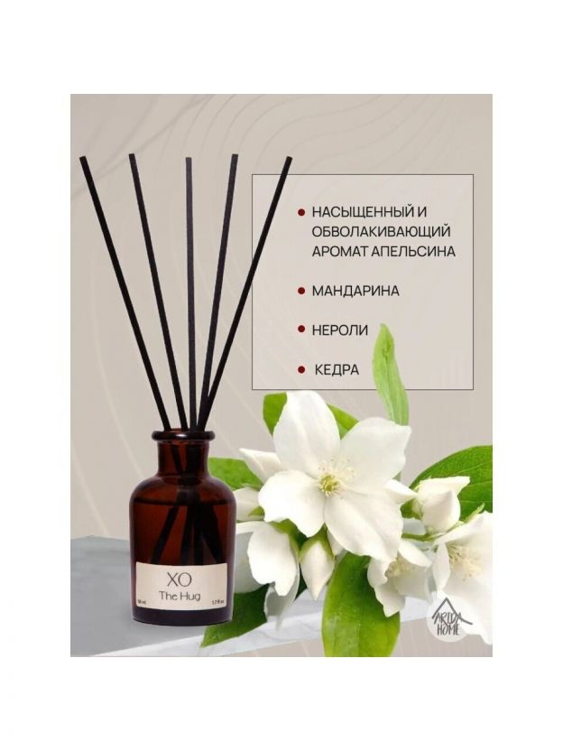 Диффузор с фибровыми палочками - это безопасный экологически чистый и натуральный способ ароматизации помещения, является прекрасной альтернативой ароматизированным спреям. Стильный дизайн этого модного ароматического аксессуара украсит любой интерьер. Диффузор представляет собой изящную стеклянную емкость с ароматной жидкостью. В нее вставляются несколько длинных фибровых палочек. Постепенно, насыщаясь эфирными маслами, они распространяют аромат по всей комнате. Характеристики: Объем: 50 мл; Бренд: Arida Home; Производитель: Россия. Способ применения: открыв упаковку, извлеките бутылочку и комплект палочек. Определите ровную, недоступную для детей и питомцев поверхность, где будет стоять диффузор. Достаньте пробку и вставьте палочки. Запах распространится по комнате, создавая ненавязчивый фоновый аромат. Насыщенность аромата можно регулировать количеством используемых палочек (чем больше палочек, тем насыщенность выше), а также периодическим переворачиванием палочек.