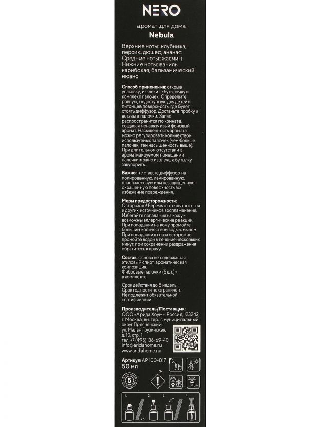 Выберите Arida Home Nero Nebula и создайте индивидуальную атмосферу в доме или офисе. Закажите по выгодной цене — убедитесь в качестве и долговечности аромата уже сегодня.