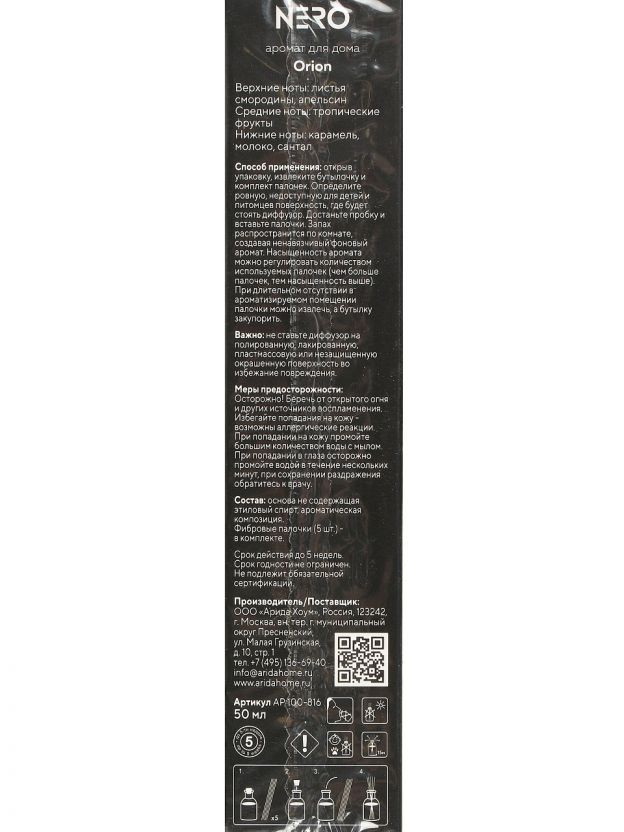 Аромадиффузор Arida Home Nero Orion 50 мл: быстрое устранение запахов, стиль для интерьера, универсальное решение для дома и офиса. Почему выбирают: Уникальный аромат Nero Orion — премиальный запах, который эффективно нейтрализует неприятные запахи без резких отдушек. Экономичный объем 50 мл — компактный флакон удобно разместить в ванной, туалете или небольшом офисе. Универсальность использования — подходит для дома, дачи, общественных мест и как оригинальный подарок. Аромадиффузор Arida Home Nero Orion — это современное решение для тех, кто ищет, какой диффузор лучше выбрать для ванной или туалета. Благодаря специально разработанной формуле, средство быстро устраняет неприятные запахи и создает комфортную атмосферу. В отличие от обычных аэрозолей и автоматических освежителей, этот интерьерный диффузор не требует батареек и не содержит запасных блоков, что снижает расходы на обслуживание. Многие спрашивают, подходит ли такой диффузор для общественных помещений или офиса. Ответ: да, компактный флакон удобно размещается в любом интерьере, не требует подключения к электросети и обеспечивает длительное действие. Если вы ищете, чем отличается этот диффузор от аналогов, обратите внимание: Arida Home не содержит агрессивных химикатов, действует мягко и безопасно, подходит для аллергиков и семей с детьми. Как использовать — просто откройте флакон и разместите его в выбранном помещении. Выбирайте Arida Home Nero Orion — купить недорого аромадиффузор для дачи или дома можно прямо сейчас. Оформите заказ и получите качественный продукт с гарантией от российского продавца. Частые вопросы: Какой объем и срок действия аромадиффузора Arida Home Nero Orion? Флакон объемом 50 мл рассчитан на использование в небольших помещениях, срок действия зависит от интенсивности запаха и влажности воздуха, обычно хватает на 3-4 недели. Что лучше для нейтрализации запахов в ванной — аэрозоль или диффузор? Диффузор Arida Home Nero Orion работает без распыления, не оставляет следов на поверхностях, не требует частого обслуживания и безопасен для детей и аллергиков. Подходит ли этот диффузор для подарка? Да, стильный дизайн и универсальный аромат делают Arida Home Nero Orion отличным выбором для подарка на новоселье, в офис или для дачи.