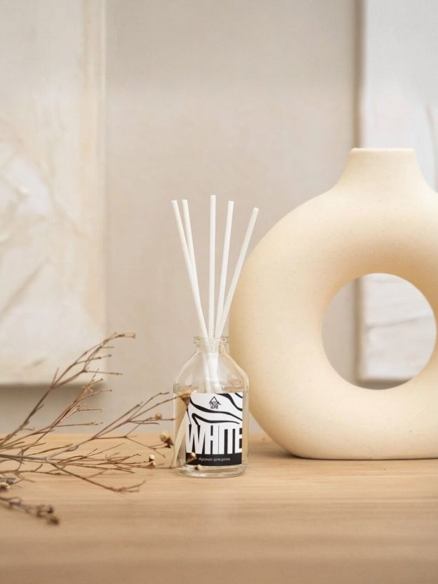 Аромадиффузор - идеальное решение для создания уютной атмосферы в вашем доме. Этот стильный аксессуар прекрасно ароматизирует помещение и украшает любой интерьер. Фибровые палочки, насыщаясь ароматной жидкостью с эфирными маслами, распространяют приятный запах по всему помещению. Диффузоры с натуральными фруктовыми и цветочными ароматами подойдут для тех, кто хочет добавить в свой дом приятный аромат, не прибегая к использованию химических ароматизаторов. Характеристики: Объем: 50 мл. Время работы: 1,5-2 месяца. Площадь ароматизации: 15 м2. Преимущества: Аромадиффузор не содержит вредных химических веществ, которые могут негативно повлиять на здоровье. Диффузор легко устанавливается и не требует особого ухода. Подходит для использования в любом помещении, включая спальни, гостиные и офисы. Аромадиффузор является отличной альтернативой ароматизированным спреям, так как он абсолютно безопасен и экологически чист. С его помощью вы сможете создать уютную и расслабляющую атмосферу в вашем доме без вреда для здоровья и окружающей среды. Приятный запах помогает расслабиться после трудного дня, улучшает настроение и повышает общий тонус организма. Кроме того, красивый флакон станет стильным дополнением к интерьеру.