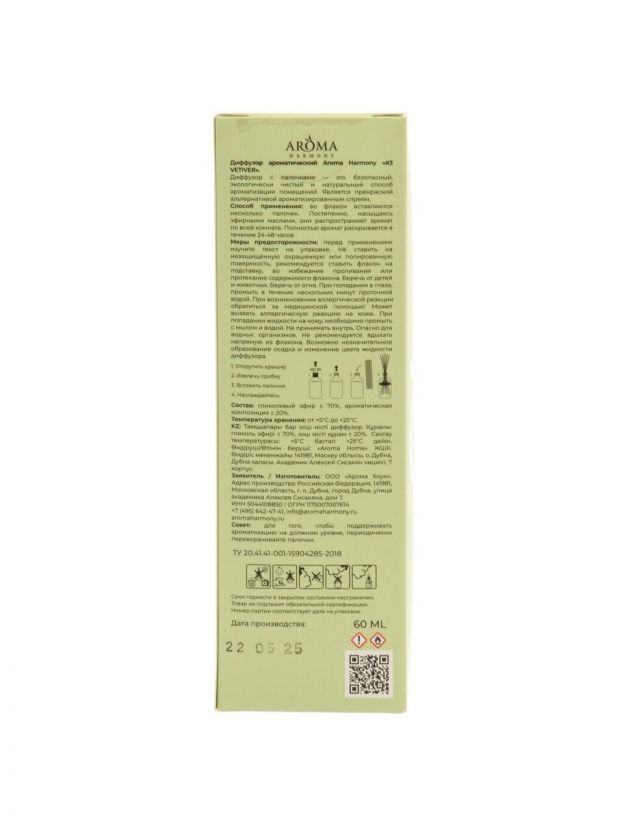 Аромадиффузор Aroma Harmony, 60 мл, №3 Vetiver, ZL0019 — современное решение для создания свежей и уютной атмосферы в доме, ванной, туалетной комнате или общественных помещениях. Эффективная нейтрализация неприятных запахов и стойкий аромат делают этот интерьерный диффузор идеальным выбором для тех, кто ценит чистоту, комфорт и гармонию в своем пространстве. Легкость использования и универсальность применения позволяют быстро и просто преобразить любое помещение, наполнив его свежестью и гармонией.