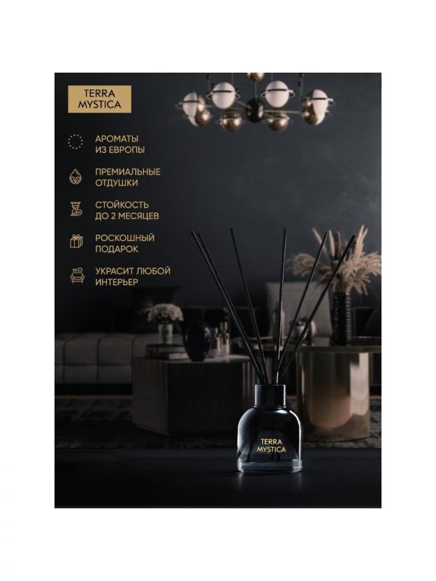 Ароматический диффузор - это безопасный и экологически чистый способ ароматизации помещения. В комплект входят фибровые палочки, благодаря которым аромат распространяется в помещении. Интенсивность аромата регулируется количеством палочек. Не забывайте переворачивать палочки 1-2 раза в день.