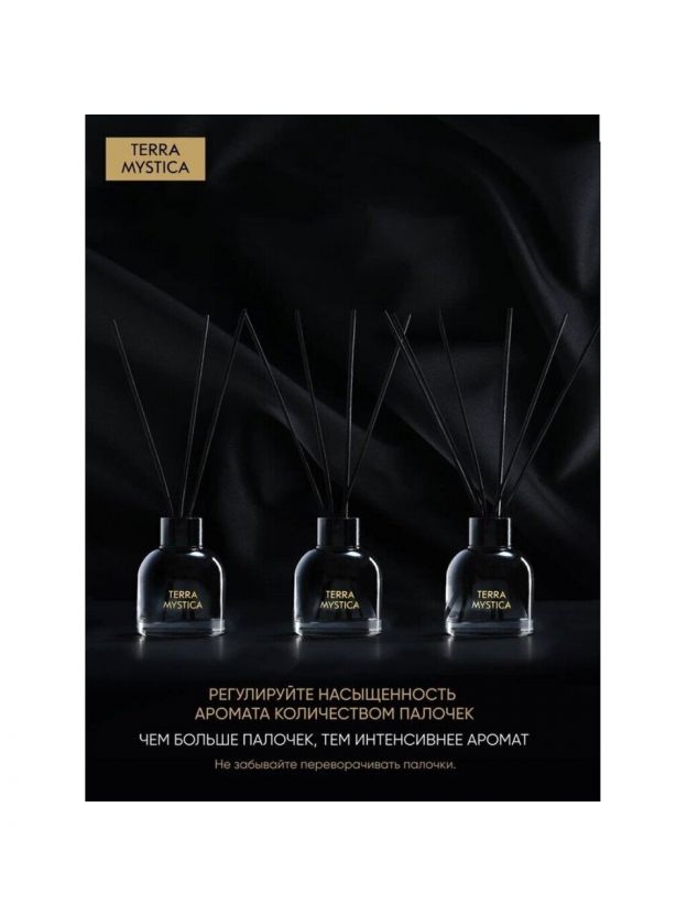 Ароматический диффузор - это безопасный и экологически чистый способ ароматизации помещения. В комплект входят фибровые палочки, благодаря которым аромат распространяется в помещении. Интенсивность аромата регулируется количеством палочек. Не забывайте переворачивать палочки 1-2 раза в день. Характеристики: Объем: 100 мл. Ноты: полынь, сандал, кашемир. Преимущества: Безопасный. Экологически чистый. Диффузоры с фибровыми палочками — это замечательный способ ароматизации вашего дома. Они абсолютно безопасны, экологически чисты и натуральны, что делает их отличной альтернативой химическим ароматизированным спреям. Эти диффузоры наполняют ваш дом приятными и стойкими ароматами, создавая ощущение свежести и уюта. С каждым движением воздуха, фибровые палочки медленно рассеивают аромат по всему помещению, наполняя ваш дом гармонией и комфортом.