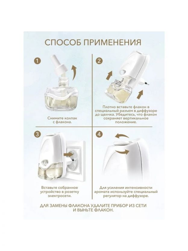 Назначение: для устранения неприятных запахов, освежения и ароматизации воздуха жилых помещений, ванных и туалетных комнат.