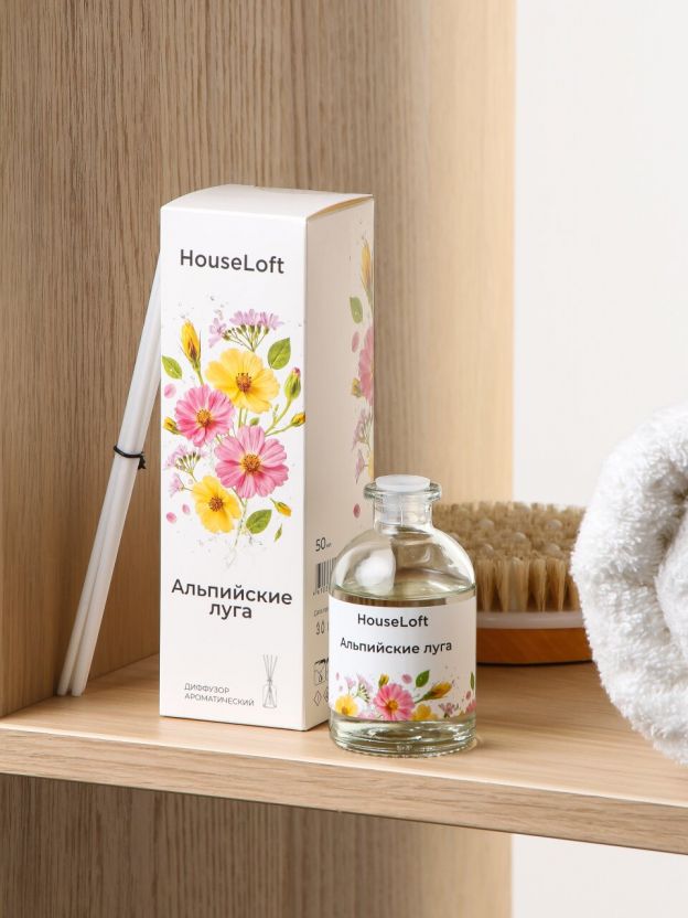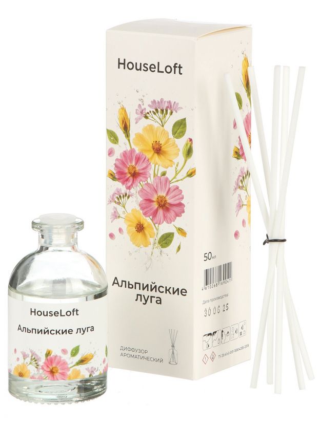 Погрузитесь в атмосферу свежести с аромадиффузором HouseLoft «Альпийские луга», 50 мл — стойкий аромат, компактный формат, идеален для подарка и уюта дома.