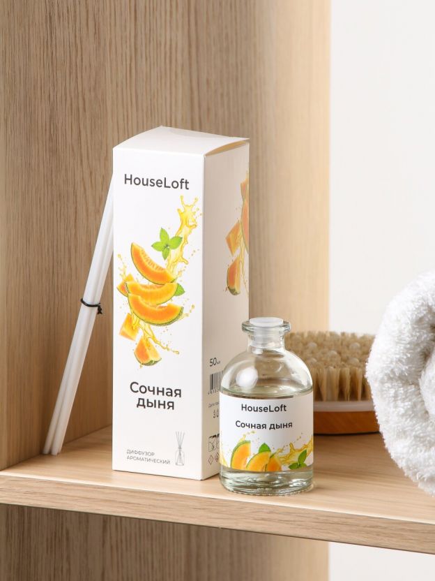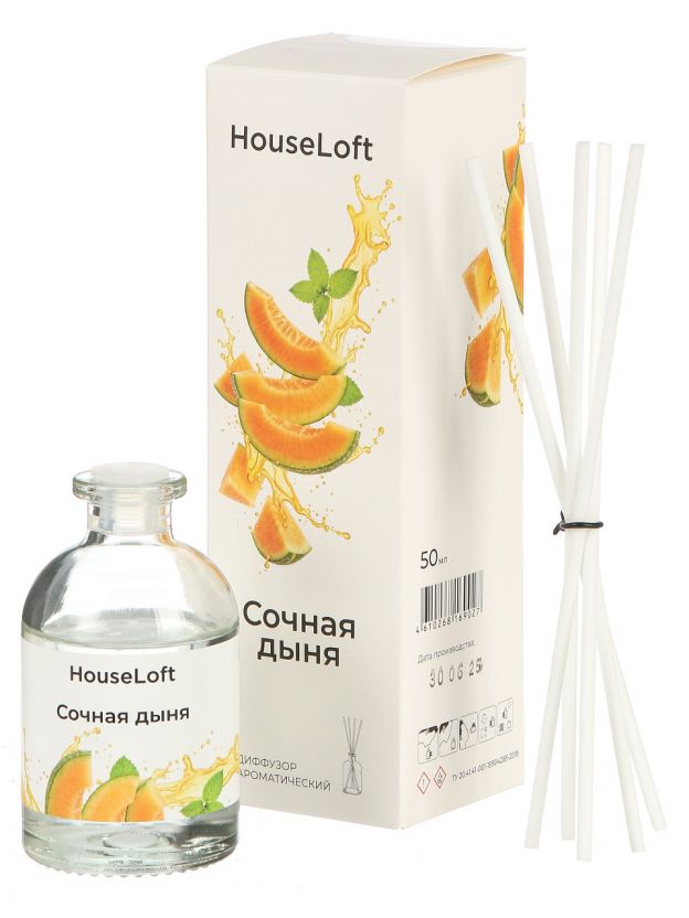 Аромадиффузор HouseLoft 50 мл: свежий аромат сочной дыни для дома и офиса. Быстрый эффект, компактный размер, стильный подарок — выгодно купить онлайн.
