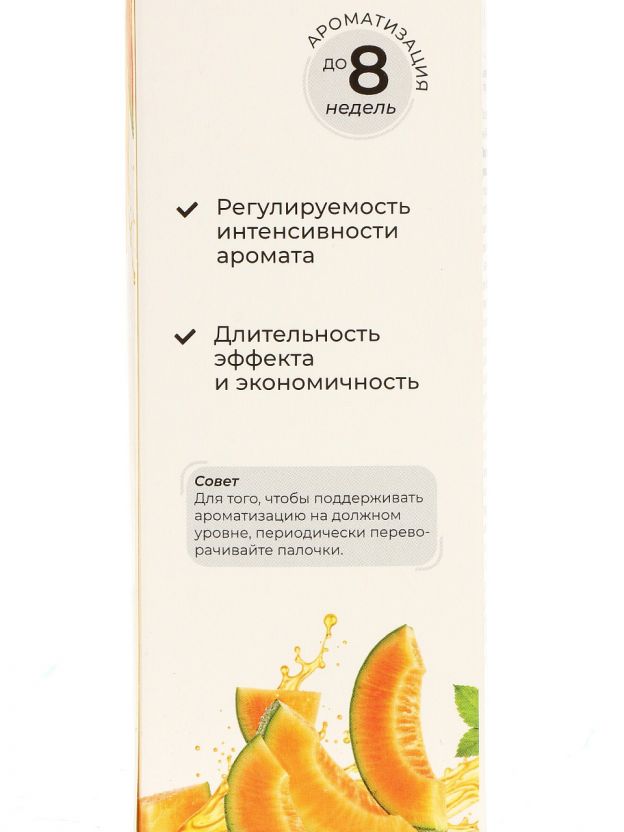 Яркий и стойкий аромат дыни — быстро наполняет пространство свежестью без резких нот