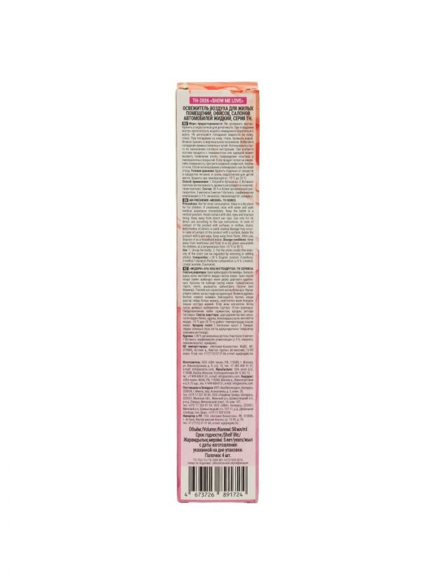 Аромадиффузор парфюм, 50 мл, Show Me Love, TH-2026 — стильное решение для нейтрализации и устранения неприятных запахов в ванной, туалетной комнате или общественных помещениях. Универсальный интерьерный диффузор с парфюмированным ароматом создаёт атмосферу уюта и свежести. Благодаря компактному объему легко разместить даже в небольших пространствах.