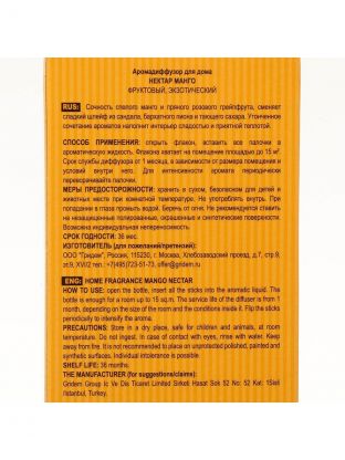 Аромадиффузор Oriatique, 40 мл, Нектар Манго — стильное решение для создания свежей атмосферы в ванной, туалетной комнате или любом общественном помещении. Яркий аромат манго наполняет пространство приятными нотами, эффективно нейтрализует и устраняет неприятные запахи, обеспечивая ощущение чистоты и уюта. Компактный формат идеально подходит для дома и дачи, а длительный срок хранения гарантирует долгую свежесть.