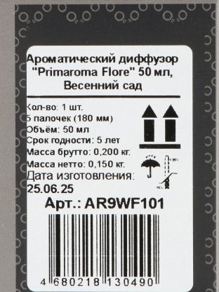 Аромадиффузор 50 мл Primaroma Flore «Весенний сад» — нейтрализует запахи в ванной и туалете, наполняя интерьер свежестью весны. Решение для быта и офиса.