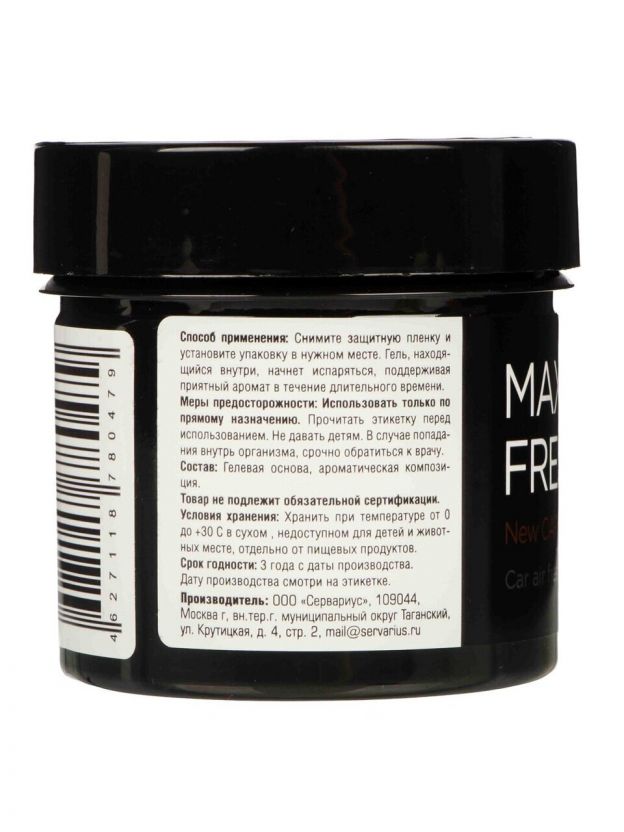 Ароматизатор Maxifresh Новая машина (CMF-102) — стильное решение для свежести в салоне автомобиля. Компактная банка удобно размещается на панели и гармонично сочетается с интерьером благодаря черному цвету. Приятный аромат создает атмосферу уюта и комфорта в пути, а бренд Maxifresh гарантирует качество и стойкость аромата.