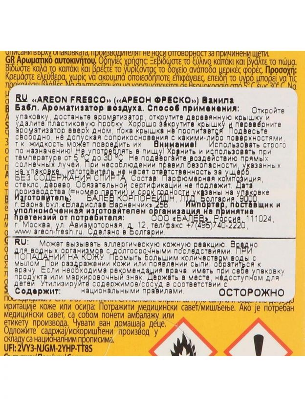 Ароматизатор в машину подвесной, бочонок, Areon, Fresco Ваниль Бабл Гам, 704-051-330
