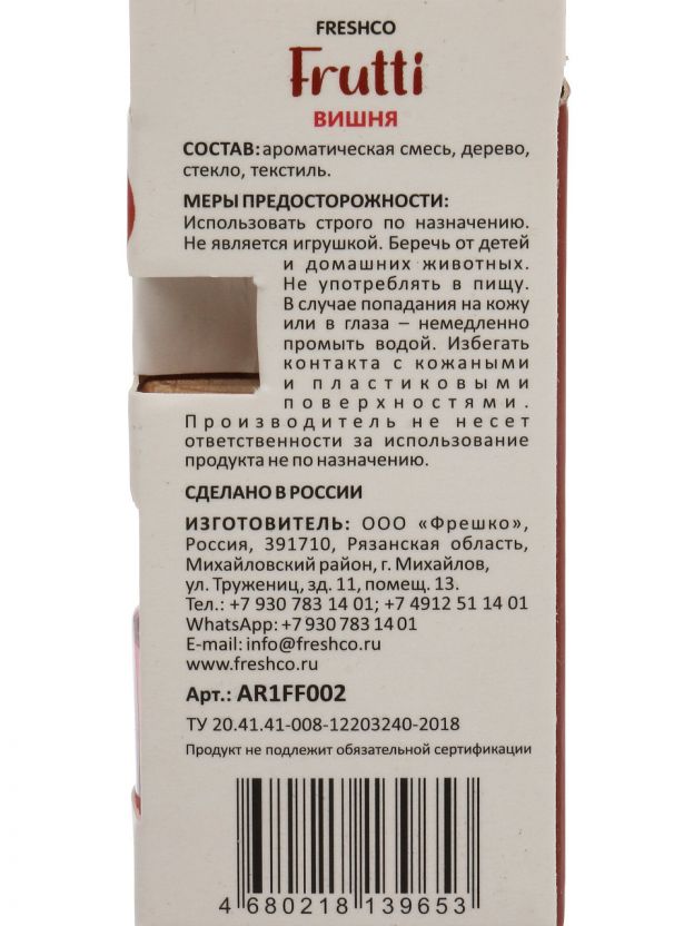 Как использовать ароматизатор Freshco Frutti? Просто открутите крышку, снимите защитную мембрану и закрепите бочонок на зеркале или вентиляции. Подходит ли для небольших помещений? Да, компактный размер позволяет использовать его не только в авто, но и в шкафу, на даче или даже в офисе. Если вы ищете, что лучше для подарка водителю, этот вариант оценят за универсальность и приятный вишнёвый аромат без химических нот.