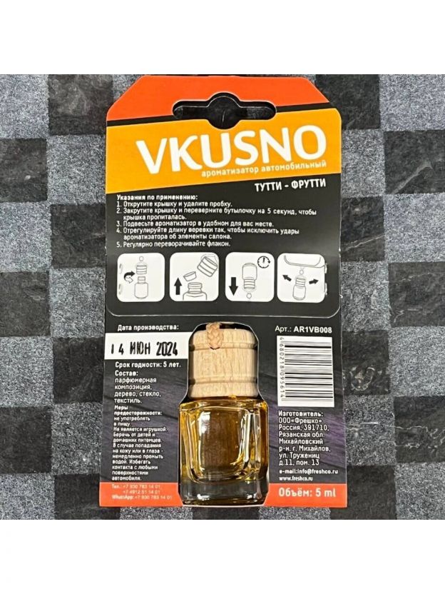 Ароматизатор в машину подвесной, бочонок, Freshco, Vkusno Тутти-Фрутти, AR1VB008