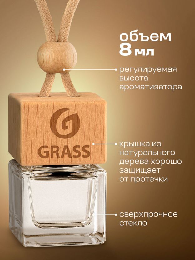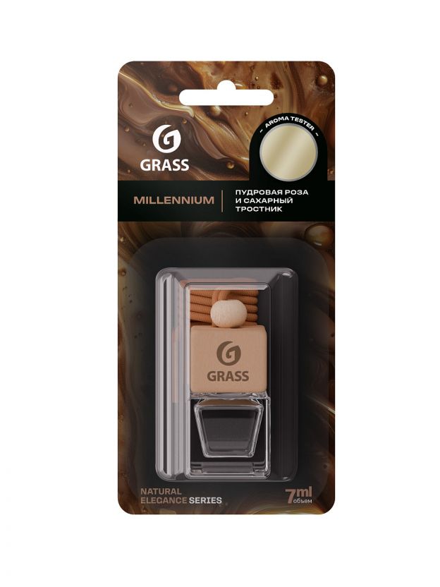 Ароматизатор жидкий подвесной серии Grass Millenium - деликатная пудровая роза с нежным фруктовым букетом и бархатистыми сахарным тростником. Композиция переливается цветочными и сливочными нотами, делая аромат тёплым, мягким и стойким. Не содержит спирта.