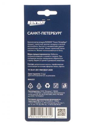 Ароматизатор воздуха в машину подвесной, сухой, Runway, Кофе-ваниль, “СПБ”, RW6221