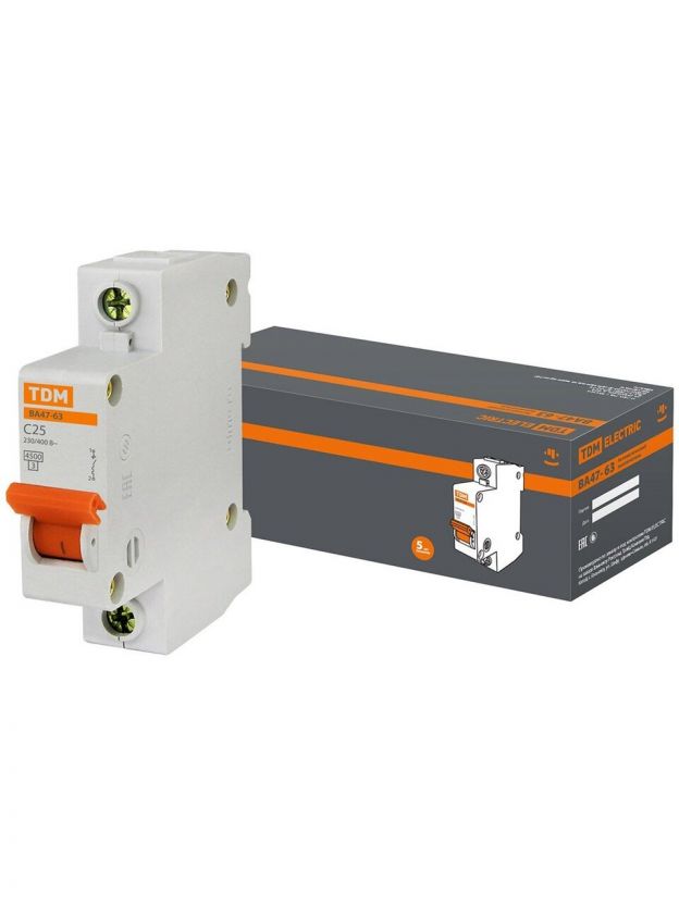 Автоматический выключатель TDM Electric, ВА47-63, 1 полюс, 25 А, 4.5 кА, С, SQ0218-0005
