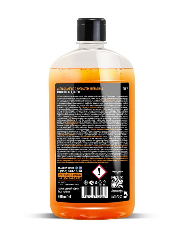 Автошампунь Grass, Universal Апельсин, 0.5 л, 111105-1