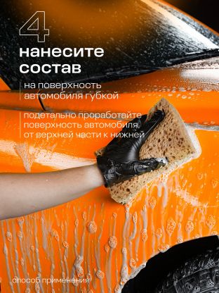 Автошампунь произведен на основе эффективных моющих компонентов. Специальный состав эффективно очищает въевшуюся грязь, сажу, масляные пятна, соль и другие тяжелые эксплуатационные загрязнения, обеспечивает полирующий эффект. Автошампунь не оказывает раздражающего эффекта на кожу рук. Характеристики: Объем: 500 мл. Концентрат: да. Аромат: апельсин. Способ применения: Растворить 30-50 г шампуня в 10 л воды. Нанести на поверхность машины. Можно наносить пену как вручную, так и с помощью пеногенератора. Обильно смыть водой. Состав: _30% вода очищенная,