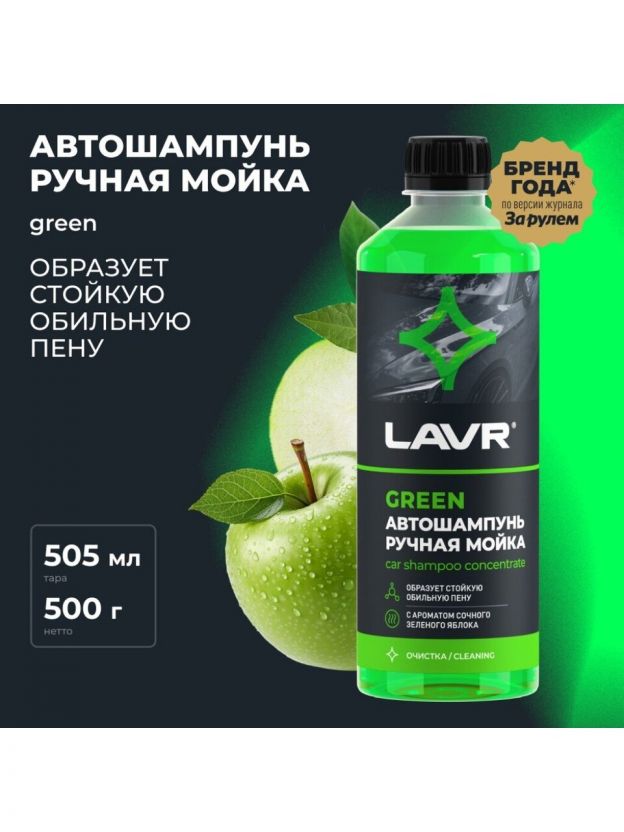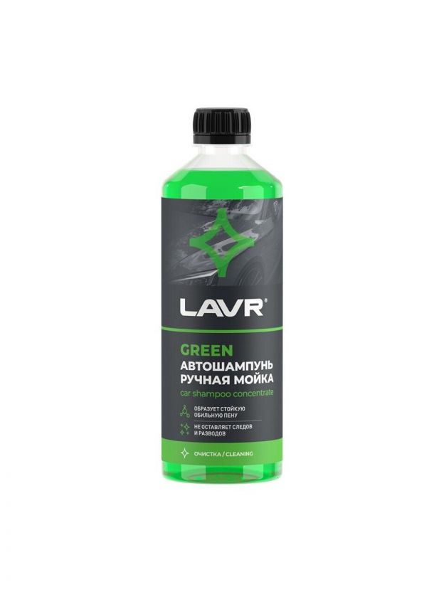 Lavr Green - концентрированный автошампунь для ручной мойки автомобиля. Автошампунь образует обильную пену, которая отлично справляется с различными видами загрязнений.