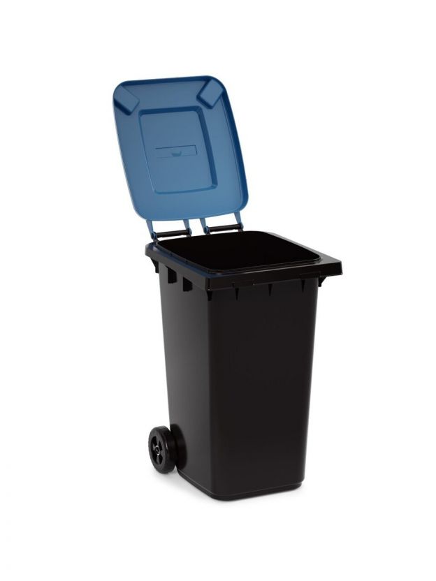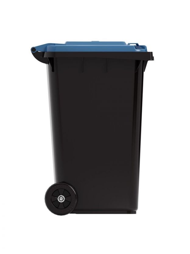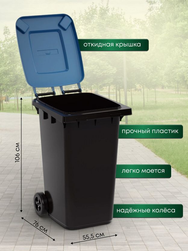 Бак для мусора пластик, 240 л, с крышкой, с колесами, 55.5х76х106 см, черно-синий, Альтернатива, М5938