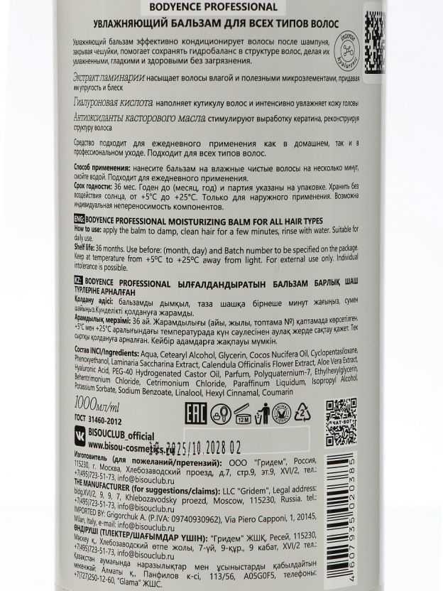 Бальзам Bodyence 1000 мл — профессиональное увлажнение для всех типов волос: гладкость, защита, экономия на салонных процедурах уже после первого применения. Почему выбирают: Интенсивное увлажнение и восстановление структуры волос — эффект как после салона дома Большой объём 1000 мл — экономичный расход, подходит для всей семьи Универсальность: подходит для ежедневного ухода, дачи, подарка или использования после окрашивания Бальзам Bodyence — это оптимальное решение для тех, кто ищет, какой увлажняющий бальзам выбрать для всех типов волос. Благодаря сбалансированной формуле, средство мягко ухаживает за сухими и нормальными волосами, снижает пушистость, облегчает расчёсывание и защищает от повреждений. Если вы ищете, что лучше для восстановления волос после окрашивания или укладки, Bodyence обеспечивает глубокое питание и помогает сохранить здоровый блеск. В отличие от аналогов с агрессивными компонентами, этот бальзам не утяжеляет волосы и не вызывает жирности у корней. Как использовать бальзам Bodyence? Просто нанесите на чистые влажные волосы, оставьте на 2-3 минуты и смойте. Подходит ли для ежедневного применения? Да, формула безопасна даже для чувствительной кожи головы. Для тех, кто выбирает, чем отличается Bodyence от обычных бальзамов, ответ прост: профессиональный объём, универсальность и заметный результат уже после первого применения. Это идеальный выбор для домашнего и дачного ухода, а также отличный подарок для близких. Попробуйте бальзам Bodyence — закажите с выгодной ценой и гарантией оригинального качества. Ваши волосы скажут вам спасибо! Частые вопросы: Для какого типа волос подходит бальзам Bodyence? Средство универсально: подходит для сухих, нормальных, окрашенных и повреждённых волос. Большой объём 1000 мл удобно использовать всей семьёй. Можно ли использовать бальзам ежедневно? Да, формула подходит для регулярного применения, не утяжеляет волосы и не вызывает жирности. Отличный выбор для домашнего ухода и восстановления после солнца или окрашивания. Какой объём у бальзама Bodyence? Флакон объёмом 1000 мл — это экономия и удобство, особенно если вы ищете, где купить недорого увлажняющий бальзам для дачи или семьи.