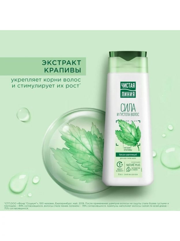 Бальзам для всех типов волос, Чистая линия, Крапива укрепляющий, 230 мл