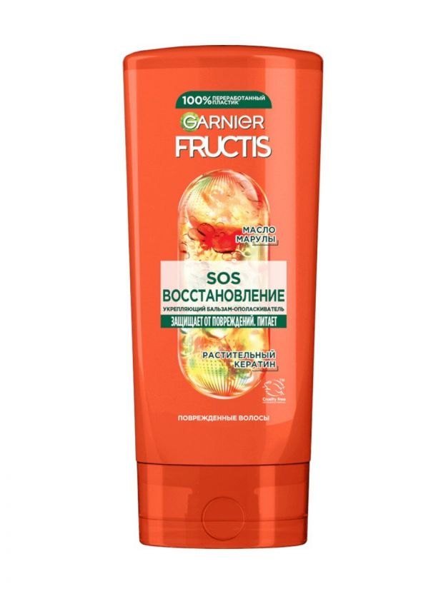 Бальзам-ополаскиватель Fructis SOS Восстановление устраняет 1 год повреждений всего за три применения. Способный глубоко проникать в структуру волоса кератин укрепляет волокна изнутри. Масло марулы сглаживает кутикулу волоса по всей длине и «запечатывает» секущиеся кончики, избавляя локоны от ломкости и тусклости. Активный концентрат фруктов оказывает антиоксидантное действие, укрепляет корни, способствует росту более плотных и здоровых волос.