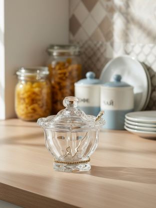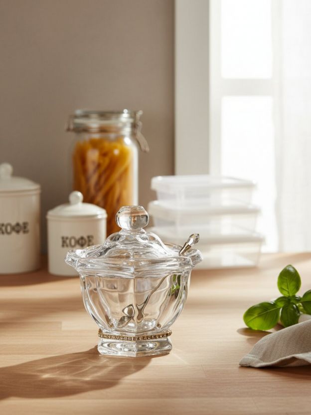 Банка для меда, стекло, 0.25 л, 12.5х12.5х14 см, с крышкой, с ложкой, Lefard, Рублевка, 355-096