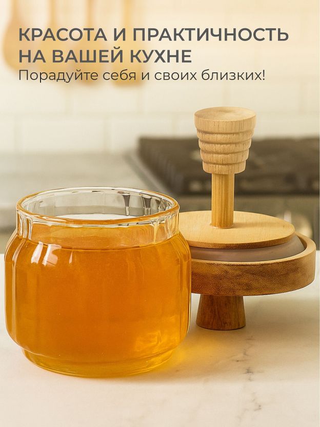 Покупка этой банки для меда – это не только возможность сохранить любимый продукт в идеальных условиях, но и стильное дополнение к кухонному интерьеру. Выгода очевидна: сочетание эстетики и функциональности в одном продукте, который будет радовать глаз и служить верой и правдой. Выбирая эту банку, вы получаете надежность и стиль в каждой детали.