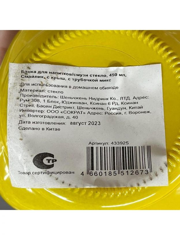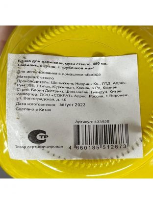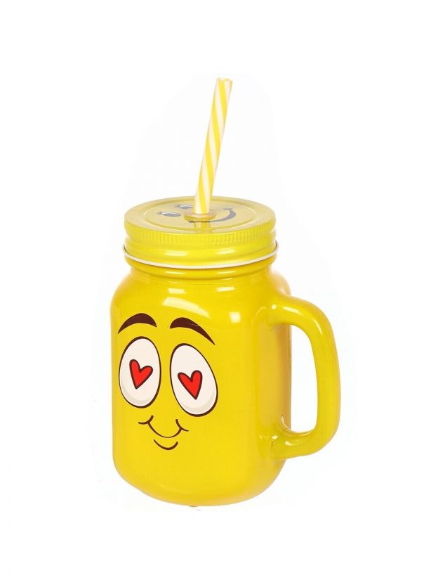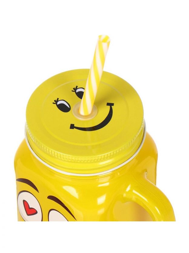 Банка для напитков/смузи стекло, 450 мл, Смайлик, с крышкой, с трубочкой, Y4-6540, в ассортименте