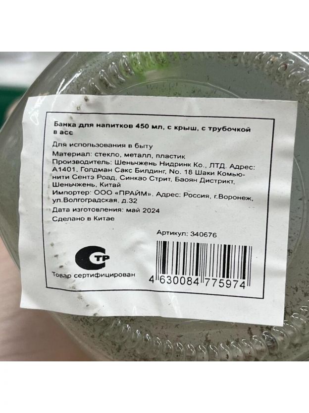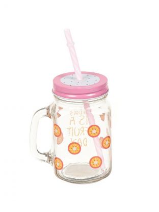 Банка для напитков стекло, 450 мл, с крышкой, с трубочкой, Y4-2809, в ассортименте