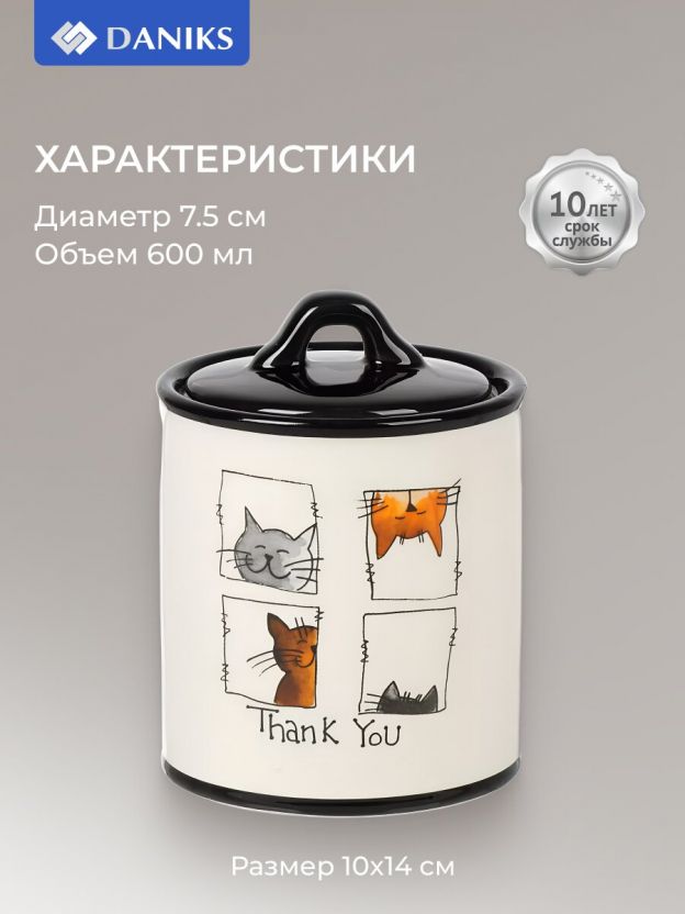 • уникальность: каждая банка из коллекции Daniks Cats имеет свой неповторимый стиль, что делает ее отличным подарком для любителей оригинальных кухонных аксессуаров.