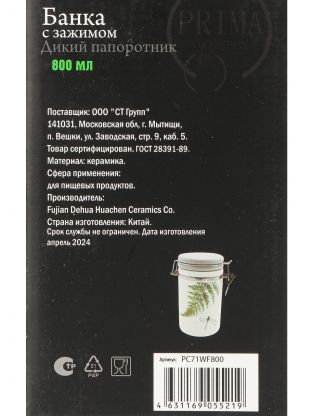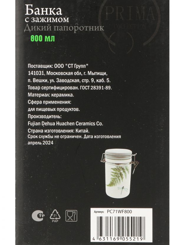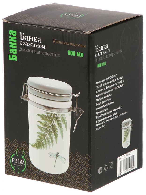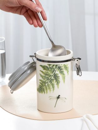 Банка для сыпучих продуктов PRIMA COLLECTION "Дикий папоротник" 0.8 л: герметичное хранение, стильный дизайн, долговечная керамика — идеальный выбор для кухни и дачи.