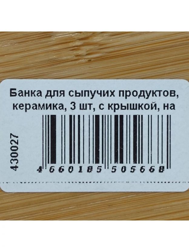 Банка для сыпучих продуктов, керамика, 3 шт, с крышкой, на бамбуковой подставке, Y6-6465