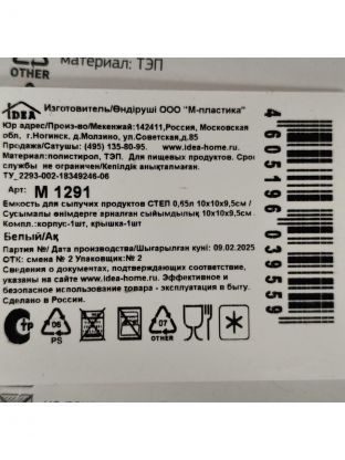 Назначение: хранение сыпучих продуктов.
