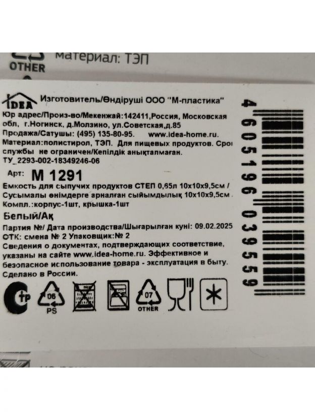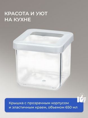 Банка для сыпучих продуктов, пластик, 0.65 л, 10х10х9.5 см, с крышкой, Idea, Степ, М 1291