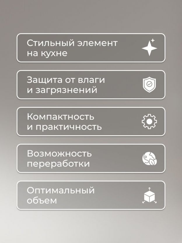 Предназначены для хранения различных сыпучих продуктов: сахара, кофе, муки, соли, круп, макаронных изделий, печенье и многого другого.
