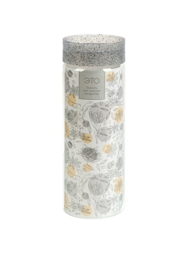 Банка для сыпучих продуктов, пластик, 1.5 л, 9.2х9.2х27 см, с крышкой, Homver, Asti, 50821/02, светло-серая