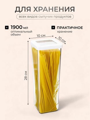 Банка для сыпучих продуктов, пластик, 1.9 л, 10х10х28 см, с крышкой, Idea, Степ, М 1294