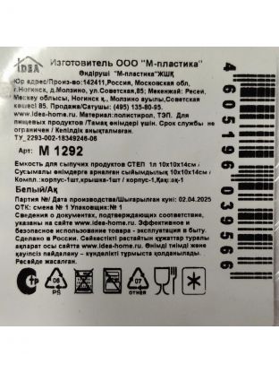 - Герметичная крышка защищает содержимое от влаги и запахов, предотвращая порчу продуктов.