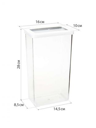 Изделия имеют прозрачный корпус и крышку. Поэтому всегда видно содержимое и его количество, не важно где стоят ёмкости, в выдвижном или навесном ящике.