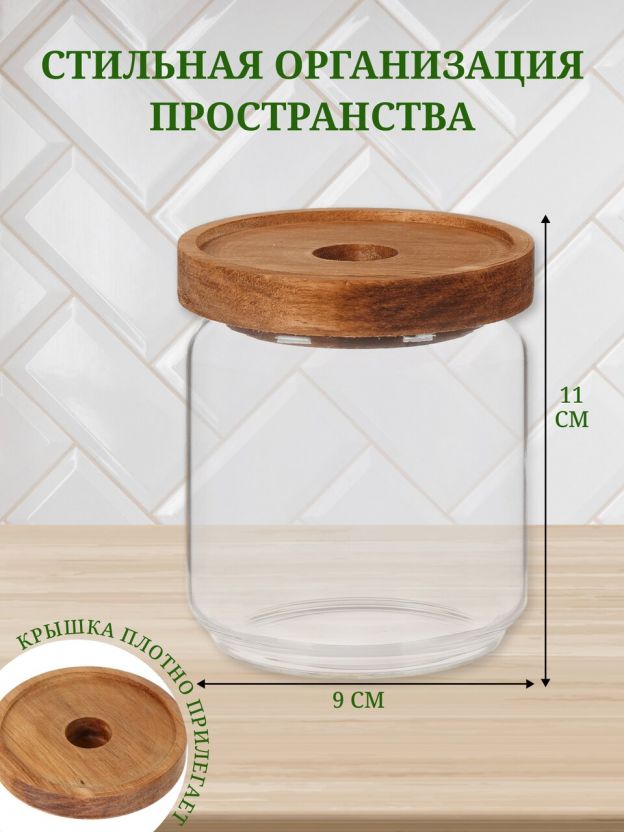 Банка для сыпучих продуктов, стекло, 0.45 л, с крышкой, Y4-6220