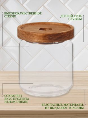 Банка для хранения изготовлена из прочного стекла. Изделие снабжено крышкой, которая плотно закрывается. Она имеет прозрачные стенки, поэтому всегда видно, что именно находится внутри. Банка удобна для хранения круп, сахара, специй, кофе или чая. Она стильно дополнит интерьер и поможет эффективно организовать пространство на кухне.