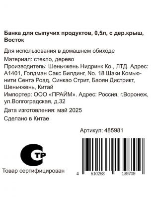 Подходит ли эта банка для хранения кофе, чая, соли? Да, благодаря герметичной крышке и рельефной поверхности, продукты сохраняют аромат и не высыпаются при открытии. В отличие от аналогов, банка не мутнеет, легко моется вручную (не предназначена для посудомоечной машины и СВЧ), а универсальный дизайн «Восток» делает её уместной и на кухне городской квартиры, и на даче. Часто спрашивают, сколько грамм вмещает банка — для стандартных сыпучих продуктов (сахар, соль) это около 400-500 г.