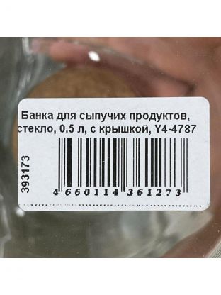 Банка для сыпучих продуктов, стекло, 0.5 л, с крышкой, Y4-4787